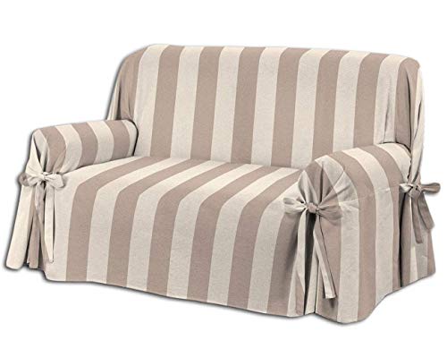 HomeLife - Copridivano con Laccetti a due posti Beige - Salvadivano 2 posti a Righe - Telo in Cotone con lacci per copertura, protezione da polvere, macchie e usura. Qualità Made in Italy - Beige
