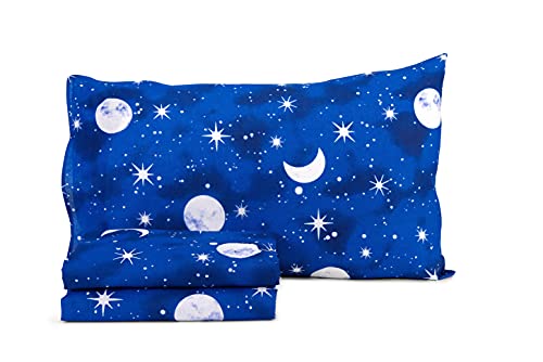 HomeLife Set Lenzuola Completo Letto Singolo 100% Cotone Made in Italy | Lenzuolo Sopra 155x290CM + Lenzuolo Sotto con Angoli 90x200 + Federa con Patella 50x80 | Stampa Spazio e Pianeti Blu