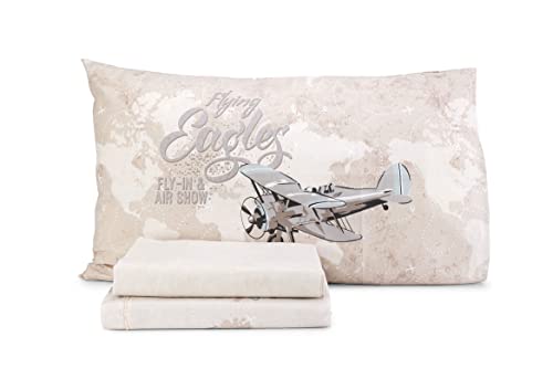 HomeLife Set Lenzuola Una Piazza e Mezza Cotone Made in Italy | Completo Letto Una Piazza e Mezza Cotone composto da Lenzuolo Sopra, Lenzuolo con Angoli, Federa Cuscino | Fantasia Aerei Beige