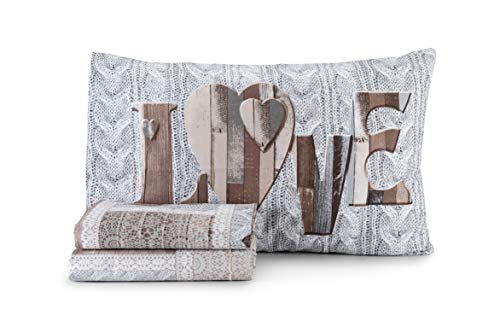 HomeLife Set Lenzuola Una Piazza e Mezza Cotone Made in Italy | Completo Letto Una Piazza e Mezza Cotone composto da Lenzuolo Sopra, Lenzuolo con Angoli, Federa Cuscino | Fantasia Shabby Beige