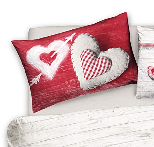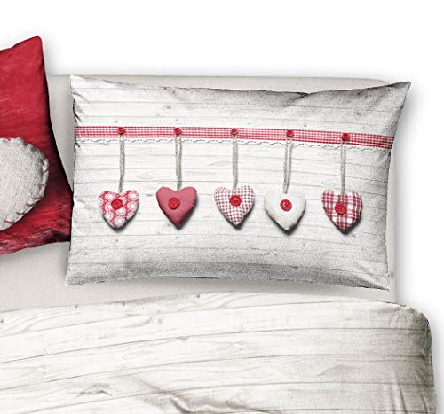HomeLife Parure Copripiumino Singolo 100% Cotone [155X200 cm] Made in italy | Set Sacco Copri Piumino Moderno con Stampa Cuori Appesi | Set Copripiumone e Federe Completo | [1 Piazza, Rosso]