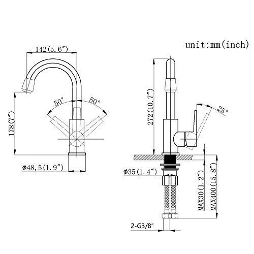 【Rotazione di 360 °】La curva di uscita può essere ruotata di 360 °, che può essere utilizzata per doppi lavelli, e la curva può essere spostata di lato senza ostacolare il lavaggio.Offriamo 2 anni di garanzia, se avete problemi con il nostro prodotto, non esitate a contattarci.