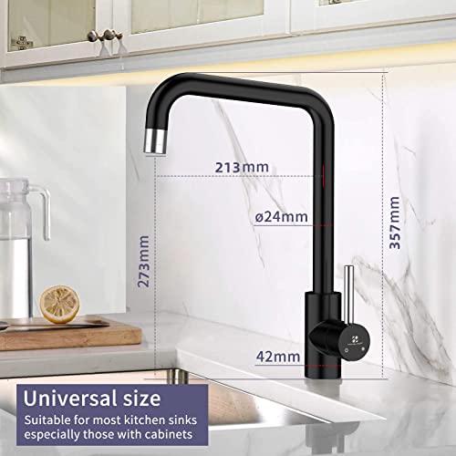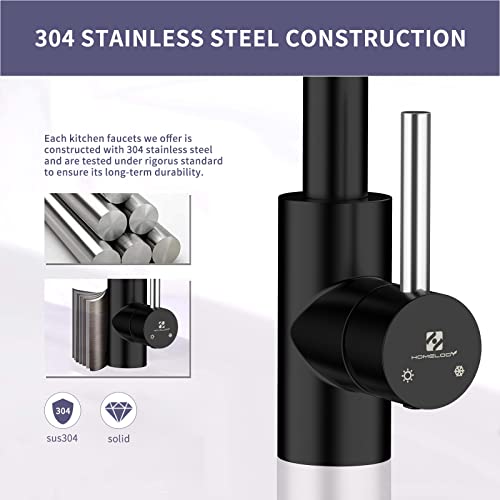 HOMELODY Rubinetto Cucina Nero Girevole a 360 ° Rubinetti da Cucina 2 Funzioni Miscelatore Monocomando per Cucina Rubinetto Nero Acciaio Inossidabile 304