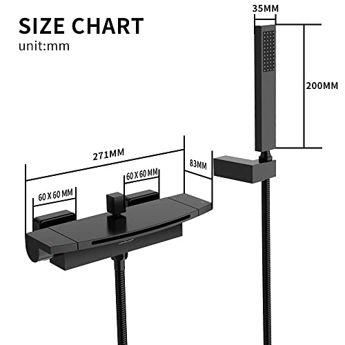HOMELODY Rubinetto Vasca a Cascata da Bagno Nero Rubinetto da Bagno a Parete con Doccetta Miscelatore Monocomando Rubinetti per Vasca da Bagno in Ottone