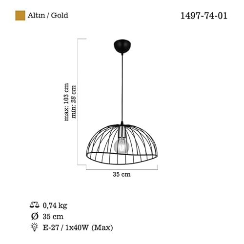 Homemania 1497-74-01 Lampada a Sospensione Noma Lampadario da Soffitto Oro, Nero Metallo, 36 x 36 x 103 cm, 1 x E27, 40W