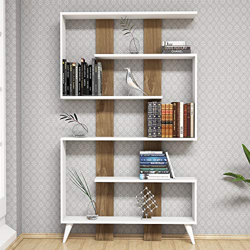 Homemania Libreria Jane, Legno, Bianco-Noce, 120 x 22 x 164 cm