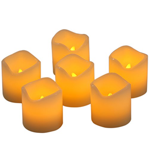 Homemory Senza Fiamma Candele di Cera a LED, 5,1 cm, Confezione da 6, a Batteria Piccolo Elettrico Finta Candela con Ambra Giallo Fiamma per votiva, Matrimonio, Retreat