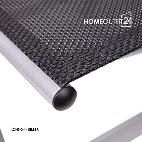 Homeoutfit24 London - Sedia da Giardino con Schienale Alto, Made in Europe, Premium Line, Poltrona pieghevole in Alluminio, 4 Pezzi, Argento
