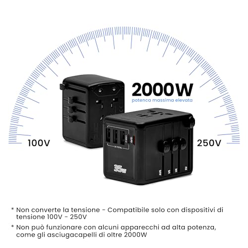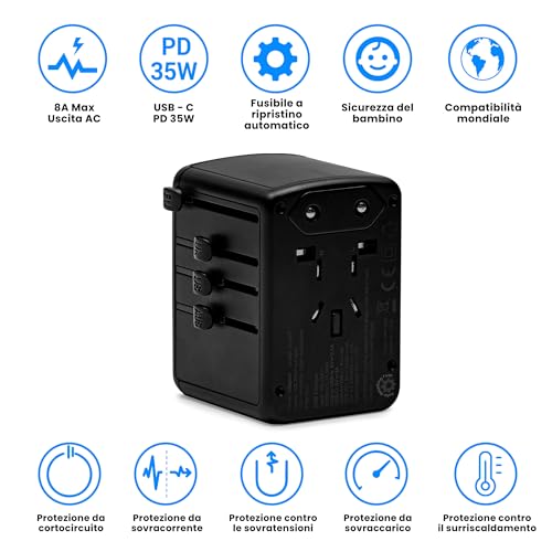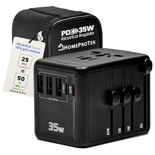 HOMEPROTEK PD 35W Adattatore Universale da Viaggio con 3 porte USB-A e 2 porte USB-C Utili Accessori da Viaggio Aereo - Adattatore Presa Americana/Inglese/Europe/Giapponese/Australia