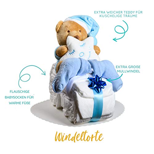 Homery - Torta di pannolini con peluche, perfetta come regalo per bimbi e bimbe dopo la nascita o durante la festa di benvenuto, realizzata a mano
