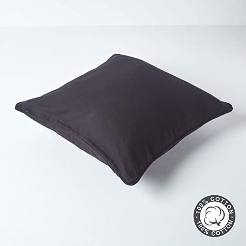Homescapes - 100% cotone tinta unita nero con imbottitura in 100% cotone - rilievo copertura ben pieni - lavabile, 100% Cotone, Black, 30 x 30 cm