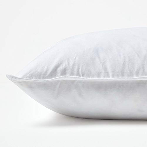 Homescapes, cuscino alla francese bianco in cotone naturale 100% con imbottitura in piume d'oca, antiacari, cuciture a punto doppio, anallergico, lavabile in lavatrice, White, 32 x 32 " (80 x 80 cm)