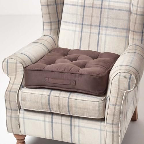 HOMESCAPES Cuscino per Seduta rialzato, Cuscino da Pavimento in camoscio Cioccolato, 50 x 50 x 10 cm