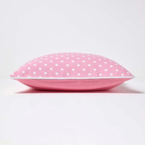 HOMESCAPES Federa per cuscino decorativo a pois, rosa, 45 x 45 cm, con motivo a pois in 100% cotone con chiusura lampo