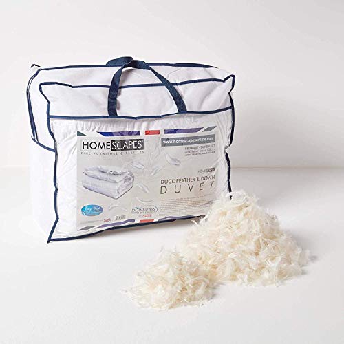 Homescapes - Piumone imbottito in piume d'anatra e piumino bianchi, con rivestimento in 100% cotone antiacaro e a prova di piuma, per letto super king, struttura a cassettoni, 13,5 tog, lavabile con lavatrice domestica