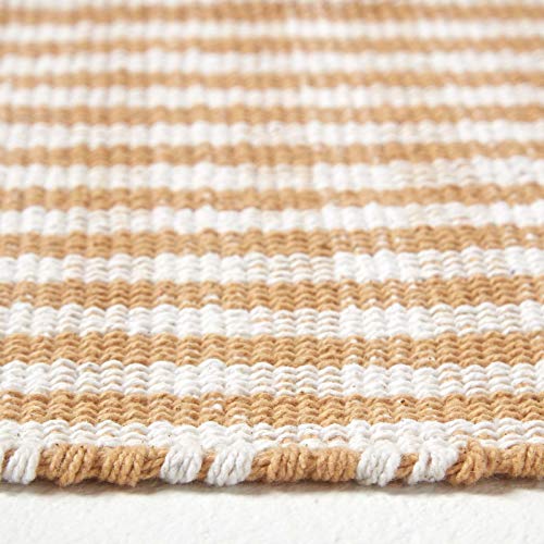 Homescapes Tappeto in tessuto a quadretti, fabbricato a mano, lavabile, per la cameretta dei bambini o per il bagno, 100% in cotone, Cotone, Beige, 70 x 120 cm