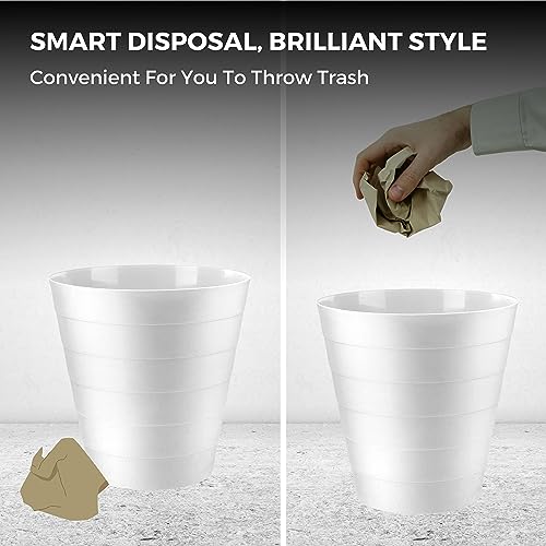 Ampia applicazione: le dimensioni e lo stile del cestino per rifiuti consentono di adattarsi quasi ovunque nella tua casa, e il design rotondo lo rende ideale per piccoli spazi. Ideale per armadietti, lavandini, servizi igienici, scrivanie e altri spazi dispari o aperture strette come tra mobili da bagno. Può essere utilizzato come cestino della carta straccia, cestino, vaso per piante e molto altro sia all'interno che all'aperto!