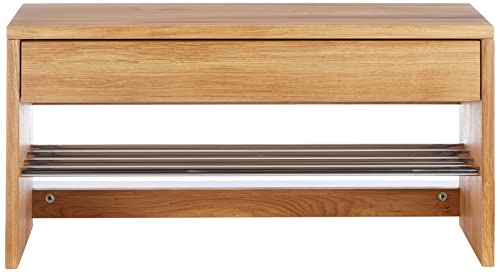 HomeTrends4You 801522 Panca Guardaroba, 81 x 40 x 32 cm, Legno di Quercia Selvaggia massiccia oliata ripiano, cassetto