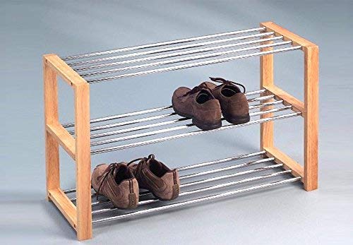 HomeTrends4You 841955 Panca con vano scarpiera, 80 x 50 x 30 cm, Colore faggio cromata