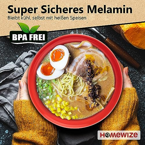 Homewize Ramen - Set di 14 ciotole in melamina leggera e robusta, lavabile in lavastoviglie, stoviglie giapponesi e ciotola da zuppa, adatta per 3 persone e senza BPA