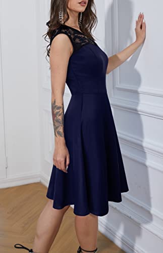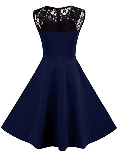 HOMEYEE Maglia Senza Maniche da Collo Rotondo in Pizzo dell'Annata delle Donne A Linea A008 (EU 36 = Size S, Blu Scuro)