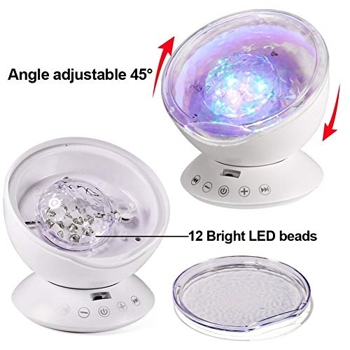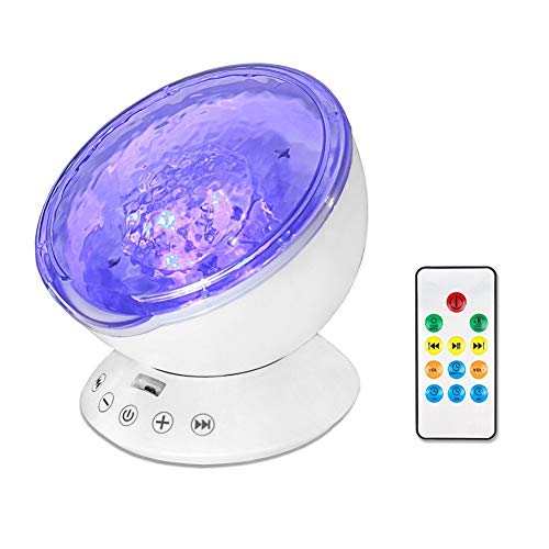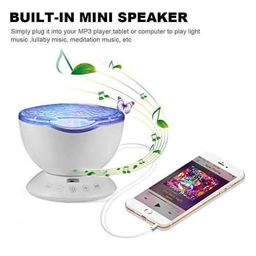 HomeYoo Luce Proiettore, Oceano Onda Lampada Notturna Proiettori Altoparlante con 7 Modalità di Luci, MP3 Altoparlante per Bambini Rilassarsi ed Addormentarsi, Decorazione per Festa (Bianco)