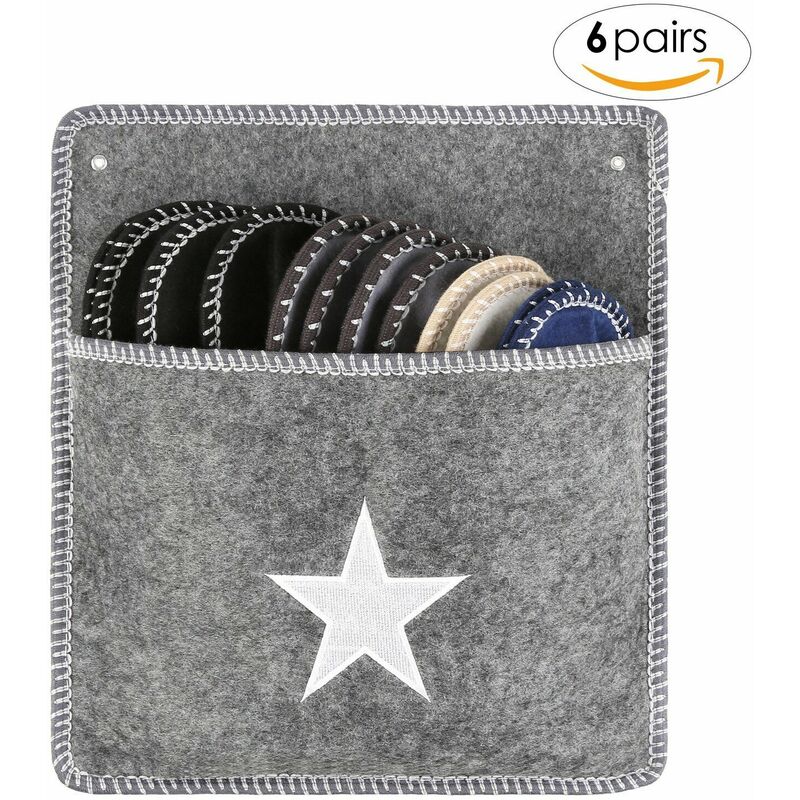 Set di 6 pantofole in feltro, pantofole, scarpe per gli ospiti, pantofole per gli ospiti antiscivolo, in feltro, taglia unisex 36-44 Disponibile a un prezzo inferiore da altri venditori che potrebbero non offrire la spedizione Prime gratuita. Materiale superiore: feltro Chiusura: sgancio rapido Altezza tacco: 6 millimetri Forma del tallone: piatta Informazioni sul prodotto Set di 6 pantofole in feltro Il set di pantofole contiene 6 paia di pantofole. Le pantofole sono adatte per unisex con una taglia del piede compresa tra 36-44 (due paia ciascuna nelle taglie 36/39, 40/42, 43/45). Set di 6 pantofole in feltro Il set di pantofole contiene 6 paia di pantofole. Le pantofole sono adatte per unisex con una taglia del piede compresa tra 36-44 (due paia ciascuna nelle taglie 36/39, 40/42, 43/45). Morbido e confortevole Le pantofole per gli ospiti sono realizzate in feltro, sono morbide e hanno una buona permeabilità all'aria. Le pantofole in feltro possono aiutare ad alleviare la stanchezza