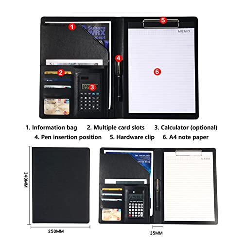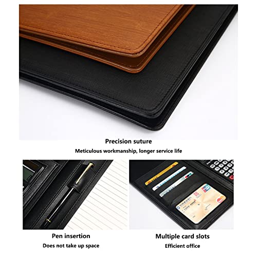 HOMFLOW Cartella for Conferenze con Quaderno Calcolatrice Portadocumenti, Portablocco, Carpetta Portadocumenti in Pelle Portafoglio A4 Cartellina Porta Documenti con Pinza