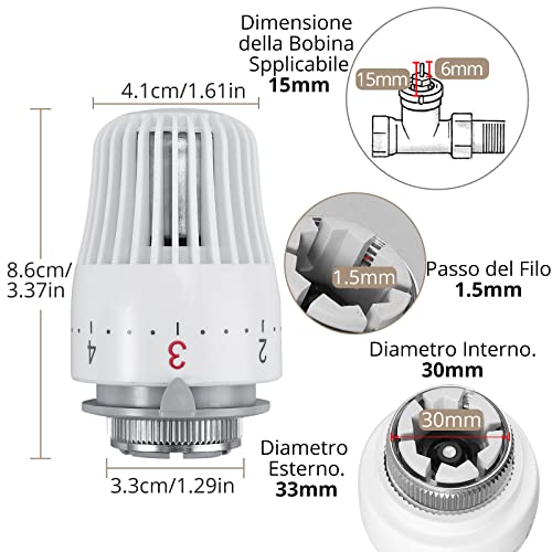 Adatto a Valvole con Connessioni Filettate M 30 x 1.5, e per Connessioni Filettate M 30 x 1.5 dai Produttori di Radiatori. Dimensioni Bobina Applicabili: 15 mm