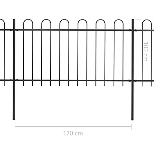 Homgoday Recinzione Giardino Recinzioni in Ferro Recinzioni per Giardino Recinzione da Giardino Staccionata da Giardino Recinzione per Giardino Staccionata con Punta Tonda in Acciaio 3,4x1 m Nera