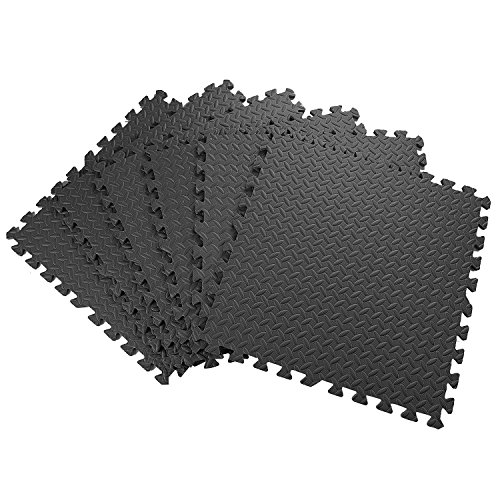 Homgrace Tappetini a Puzzle per Pavimento, Eva Stuoia Protettiva ad Incastro per Pavimento di Palestra Cucina Sala Giochi Garage, Tappetino Fitness 60cm x 60 x 1cm, Nero, 16 Pezzi