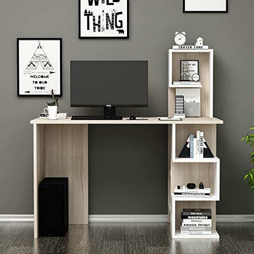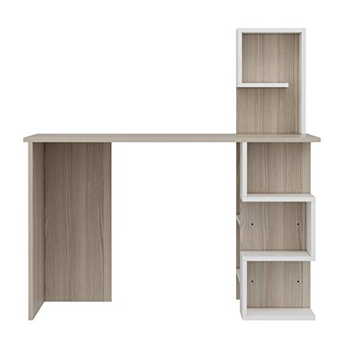 HOMIDEA DERONI Scrivania - Scrivania per computer - Scrivania ufficio - Porta PC - Tavolo per Computer con Scaffale Ripiano (Avola/Bianco)