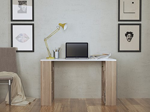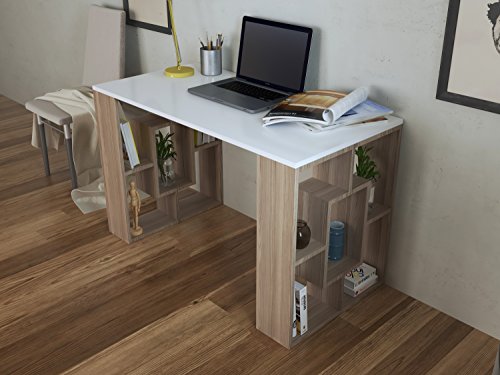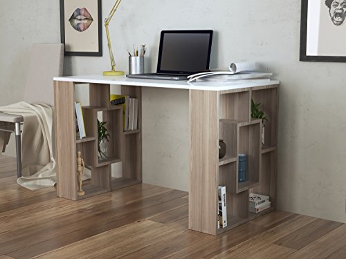 HOMIDEA Nova Scrivania - Bianco/Avola - Tavolo per Computer - Workstation per Home Office in Design Moderno