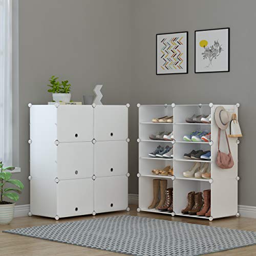 【Facile da Pulire】 La scarpiera modulare è realizzata in plastica sana, non tossica ed ecologica. Robusta e resistente, grazie al materiale plastico, la scarpiera è impermeabile e lavabile. La funzione del foro della porta è progettata per la circolazione dell'aria e previene la formazione di odori.