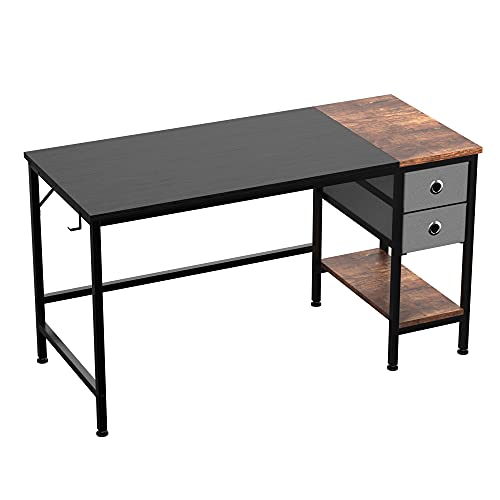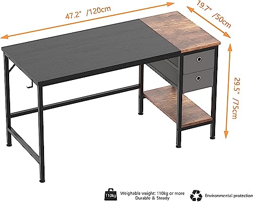 HOMIDEC Scrivania per Computer, Scrivania da Ufficio per Studenti e Lavoratori, Scrivania con Cassetto e Gancio per Cuffie, Tavolo per Laptop con Ripiani, Scrivanie in stile Moderno (120x60x75cm)