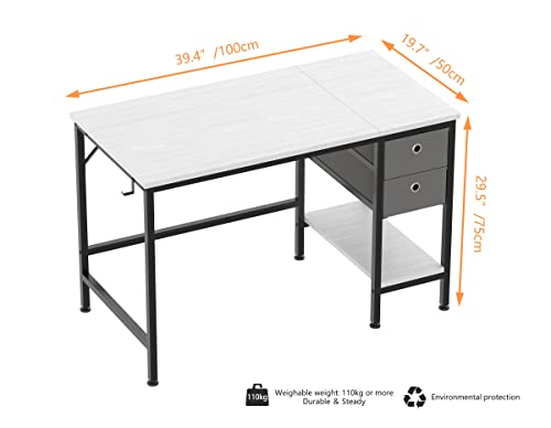 HOMIDEC Scrivania per Computer, Scrivania da Ufficio per Studenti e Lavoratori, Scrivania con Cassetto e Gancio per Cuffie, Tavolo per Laptop con Ripiani, Scrivanie in stile Moderno (100x50x75cm)