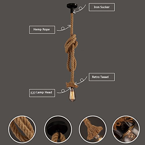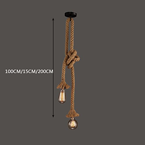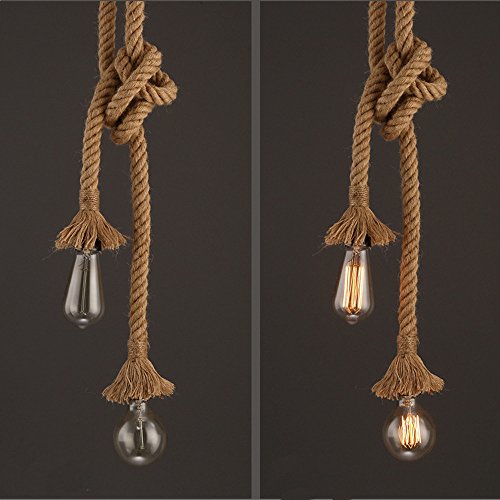 Homieco 200cm Doppia Testa Canapa Corda Lampada a Sospensione Vintage Appesa Luce di Soffitto a Sospensione Lampada per Soggiorno, Bar, luoghi pubblici, Come Decorazione Rustica(Senza Lampadina)
