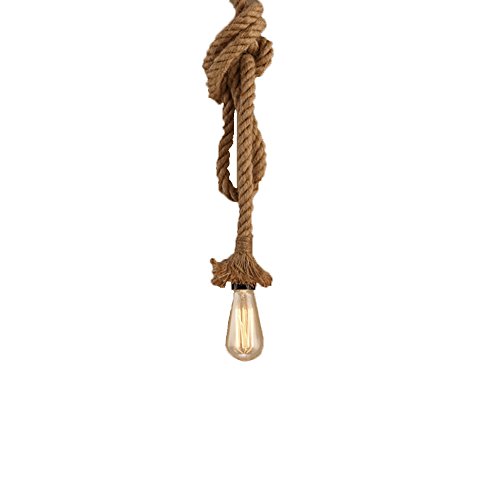 Homieco 200cm Singola Testa Canapa Corda Lampada a Sospensione Vintage Appesa Luce di Soffitto a Sospensione Lampada per Soggiorno, Bar, luoghi pubblici, Come Decorazione Rustica(Senza Lampadina)