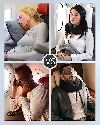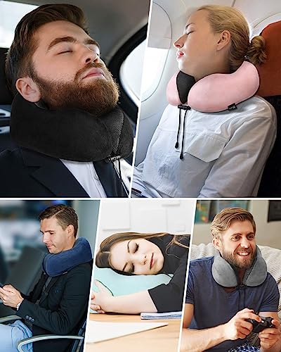 HOMIEE Cuscino da Viaggio Memory Foam, Cuscino Cervicale da Viaggio Tightness Regolabile Cuscini Collo per Treno Aereo Ufficio e Domestico Con maschera per occhi e inserti per orecchie