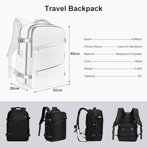HOMIEE Zaino da Viaggio per Uomo Donna Zaini da Viaggio Easyjet 45x36x20 Scuola Lavoro Affari Zaino per PC portatili Laptop da 15.6 pollici con Porta di Ricarica USB (Nero)