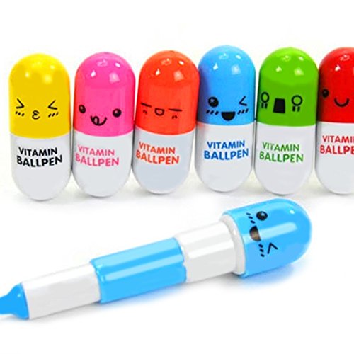 Homiki 6pcs Mignon Multicolor Vitamina pillola penna a sfera retrattile regalo pallina simpatico capsula Penna a sfera Ballpoint Ball Pen Cancelleria Scuola colore casuale