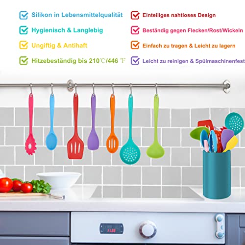 Squisita fattura: grazie alla struttura durevole, questo set di accessori da cucina rimane completo durante l'uso e non si rompe come gli altri accessori da cucina, robusto manico in silicone con design ergonomico per una presa comoda e antiscivolo, impedisce anche la trasmissione del calore durante la cottura, evita scottature delle mani