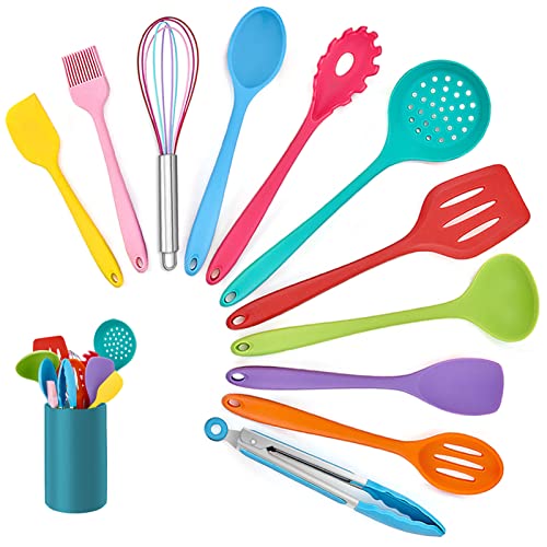 Homikit Set di utensili da cucina, 12 pezzi, utensili da cucina in silicone, resistenti al calore, set di posate da cucina con porta utensili, sani e antiaderenti, lavabili in lavastoviglie