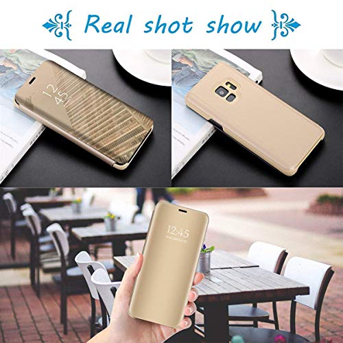 Homikon Specchio Cover per Samsung Galaxy S7 Edge Custodia in PU Pelle Specchio Portafoglio Slim Fit Mirror Effect Standing View Libro Supporto Cover Ultra Sottile Protettiva Case Bumper - Oro rosa