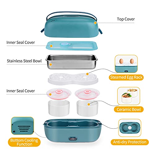 【Materiale】 Hommdiy lunch box elettrico è realizzato in materiale PP sicuro, include una ciotola di acciaio inox e 2 ciotole di ceramica, sono staccabili e rimontati, è facile da pulire.