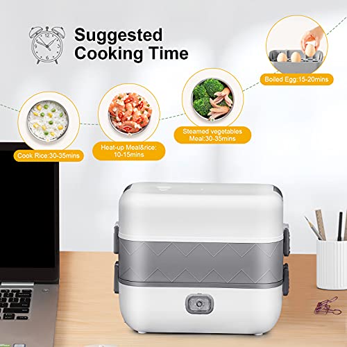 Hommdiy Scaldavivande Elettrico Portatile 2L, Portavivande Elettrico Termico 220V 200W in Acciaio Inox 304, Portapranzo Portatile per Ufficio, Lunch Box Termo con Forchetta e Cucchiaio, Bianco