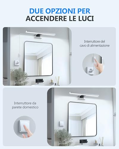 【Buon materiaie &Durata】Luci da bagno utilizzano lampada SMD LED2835 integrate di alta qualità,Vicino alla luce bianca fredda. Adotta la materia ABS, durata della lampada fino a 50.000 or.