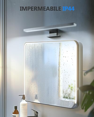 【Lampada da bagno IP44 impermeabile】Questa lampada a specchio è realizzata in acciaio inossidabile, il driver antispruzzo e il grado di protezione IP44 la rendono resistente agli schizzi e all'antiappannamento. La luce dello specchio può essere utilizzata in bagno o in altri ambienti umidi e umidi.La luce ultra brillante ma con un basso consumo energetico, ma anche Soddisfa le esigenze quotidiane di trucco