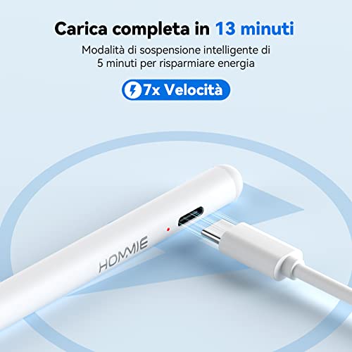 Hommie Penna iPad, i701 [Ricarica Rapida] Penna per iPad 2018-2022, Pencil iPad con Sensibile all'inclinazione y Rigetto de Palmo, Penna iPad 6-10 Gen, iPad PRO 12,9"/11", Mini 5/6, Air 3/4/5th