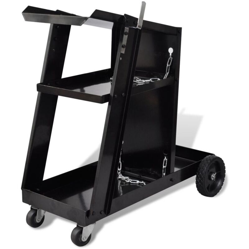 Descrizione: Questo carrello di saldatura ha una struttura robusta in acciaio. Dotato di 3 ripiani verniciati neri, è la scelta ideale per trasportare gli strumenti nelle officine, come saldatori MIG e accessori di saldatura. Realizzato in acciaio di qualità, il nostro carrello di saldatura sopporta un carico massimo di 40 kg. Il ripiano inclinato superiore offre un migliore controllo, e gli altri 2 ampi ripiani offrono ampio spazio di stoccaggio. Due ruote fisse posteriori e due ruote anteriori girevoli offrono tanta manovrabilità. Grazie al telaio robusto con finitura laccata, il nostro carrello di saldatura è molto resistente nel tempo. Specificazioni: Materiale: Acciaio Colore: Nero Capacità di carico: 40 kg Peso netto: 11 kg Dotato di 2 ruote grandi (8'') e 2 ruote piccole (3") Con 2 catene metalliche per la bombola del gas Dimensioni totali: 702 x 390 x 730 mm (L x P x A) Ripiano superiore: 450 x 280 mm (L x P) Scaffale centrale: 380 x 280 mm (L x P) Scaffale inferiore: 690 x